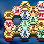 A cozy winter puzzle where you clear the board by stacking three matching hex tiles